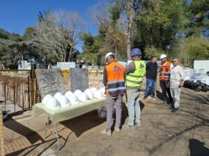 Am 8. Januar 2026 wurde der Grundstein für das zukünftige Wissenschafts- und Pilgerzentrum auf dem Ölberg gelegt. Mit Vertreter:innen der EKD, dem Architektenbüro, dem Projektmanagement, der Baustellencrew, dem Lutherischen Weltbund sowie dem Auswärtigen Amt feierte das Team des DEI diesen besonderen Meilenstein des Baufortschritts. Der Propst der evangelischen Gemeinde in Jerusalem, Joachim Lenz, sprach ein Begrüßungswort, dankte den Verantwortlichen des Projekts und erinnerte an die Vision, welche mit dem neuen Gebäude entsteht: Ein Zentrum für Wissenschaft, Bildung, Begegnung und Frieden.