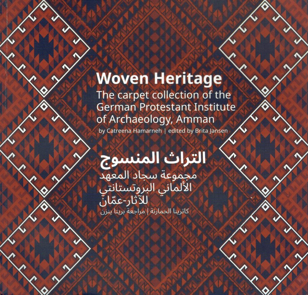 “Woven Heritage. The Carpet Collection of the German Protestant Institute of Archaeology, Amman” by Catreena Hamarneh, edited by Brita Jansen: The Amman Institute has a collection of 24 local and regional carpets and kilims, which were presented in an Arabic-English publication in 2023. In addition to a detailed presentation of the pieces from the Institute’s collection, various aspects such as the production of carpets, their use and appreciation or the meaning of patterns and symbols are presented, thus covering an important aspect of Jordan’s tangible and intangible cultural heritage.